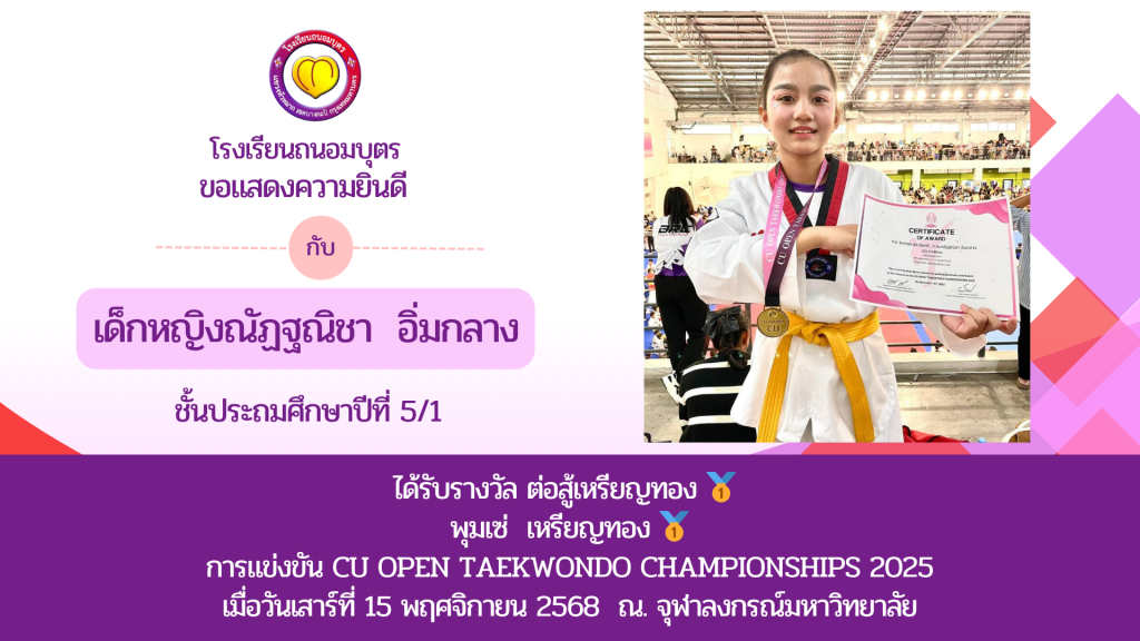 นักเรียนเก่งโรงเรียนถนอมบุตร นักเรียนได้รับรางวัลจากการแข่งขันเทควันโด ปี2568 By admin8 ธันวาคม 2025 Activities, TNBnews