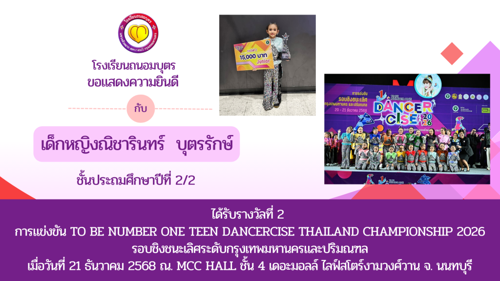 • นักเรียนที่ได้รับรางวัลการแข่งขัน To Be Number One Team Dancercise Thailand Championship 2026
